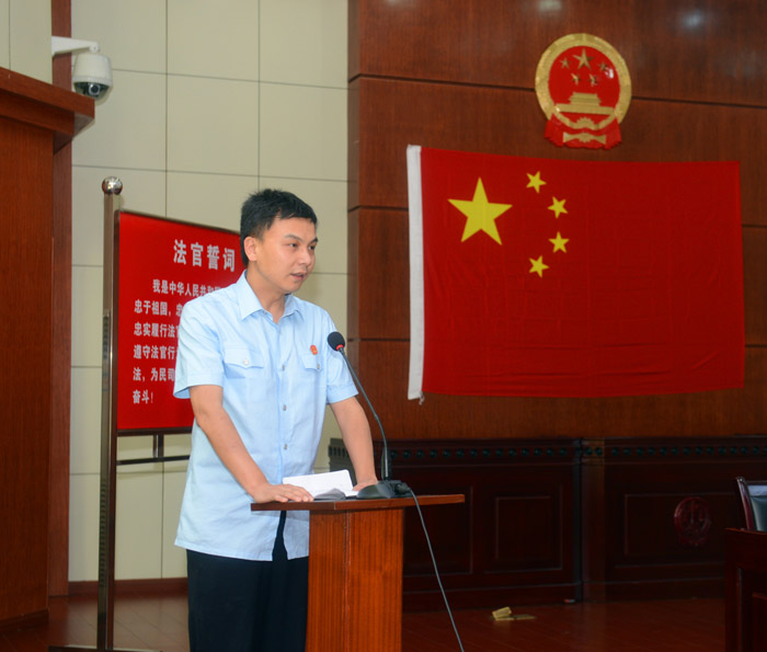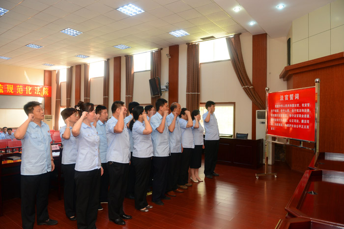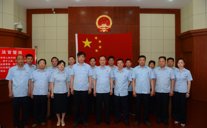 6月3日下午,武汉铁路运输法院举行了庄重的法官人民暨宣誓仪式。仪式由武铁中院党组成员、副院长兼政治部主任程先觉主持,省高院政治部副主任弓应谦受省人大常委会委托宣读省人大对我院15名同志重新任命法官的通知并颁发任命书,刑庭庭长罗军代表接受任命书的法官进行表态发言,省院政治部领导对我院重新任命的法官表示了祝贺并提出了殷切希望。最后重新任命的法官身着制服整齐列队,面对庄严的国旗,举起右手,在院党组书记、院长赵广汉的领誓下,作出庄严宣誓。