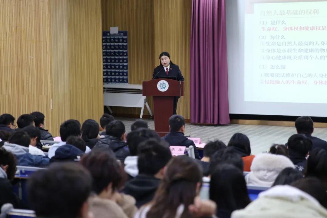 武汉铁路运输法院刑庭副庭长、一级法官冯蕾化身法治导师,向师生介绍宪法的重要意义,“自你们出生、到上学、再到今后踏入社会,每一个行为举止时刻都在宪法的保护之下”,“宪法宛如国家大厦的根基,恰似规范人民行为的标尺,对于社会的有序良性发展、国家的长治久安及人民生活的美满幸福均有着决定性的意义”,并从法理角度、基本内容、法律位阶三个维度,逐步揭开宪法的神秘面纱。